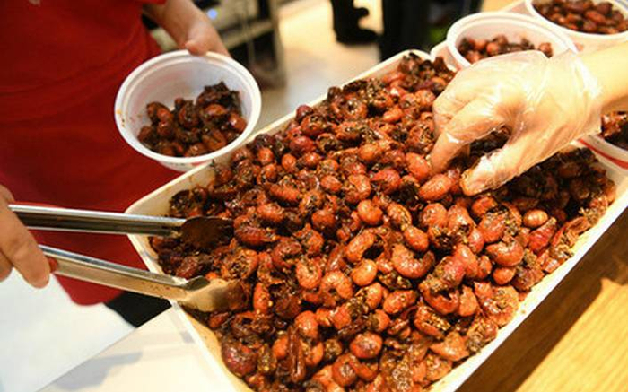 近日,重庆柳女士很幸运中了一份大奖,竟然是5000只小龙虾。活动方将5000只烹制好的小龙虾虾尾送到柳女士面前,数量足足相当于一亩池塘一季度的产量。网友:这奖品太棒,哭着也要吃完啊!(人民网)