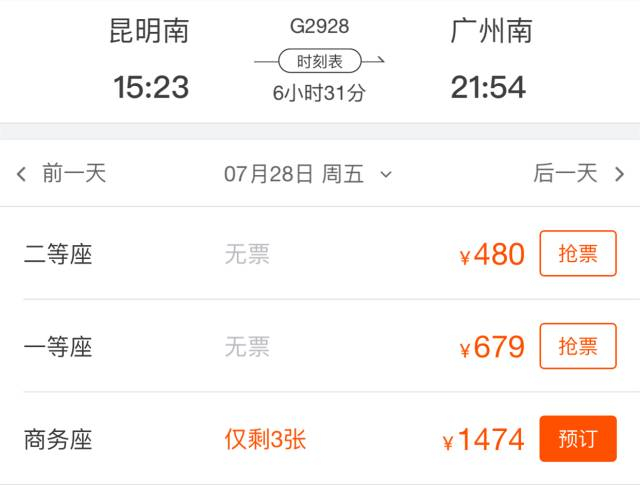 目前暂未有广深港高铁票价的消息被放出,但小编查询了一下昆明去广州的票价,二等座480元,一等座679元,商务座1474元。