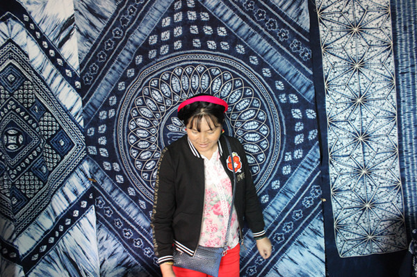 张凤良站在自家的扎染前 金希宣 摄