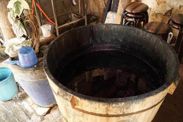 蓝续装着板蓝根染料的染缸。姚柯凡 摄