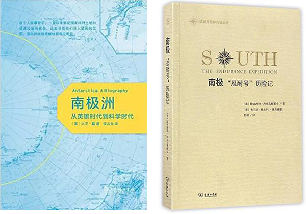 13-14.《南极洲:从英雄时代到科学时代》(大卫·戴,商务印书馆)《南极:“忍耐号”历险记》(欧内斯特·沙克尔顿爵士,商务印书馆)