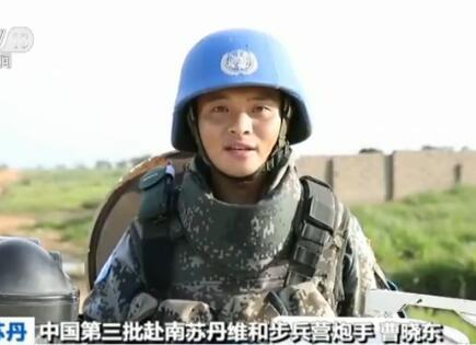 中国第三批赴南苏丹维和步兵营炮手 曹晓东:我叫曹晓东,我来自中国第三批赴南苏丹朱巴维和步兵营,我是一名炮手。