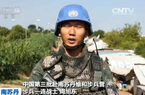 中国第三批赴南苏丹维和步兵营步兵一连战士 周旭东:我是中国第三批赴南苏丹朱巴维和步兵营步兵一连的一名战士,我叫周旭东,我来自中部战区第83集团军某旅,我现在执勤的地方是1号难民营的4号哨位。