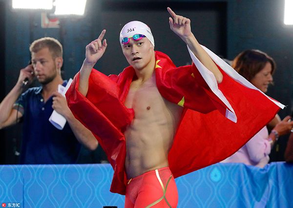 孙杨是历史上第一位集男子200米自由泳、男子400米自由泳、男子1500米自由泳奥运会金牌于一身的游泳运动员,史上第一个世锦赛男子800米自由泳三连冠。