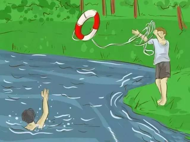 如果溺水人离岸边不远,可以就近寻找绳子或竿子把人拉上岸。(也可以将衣服连在一起当做绳索)