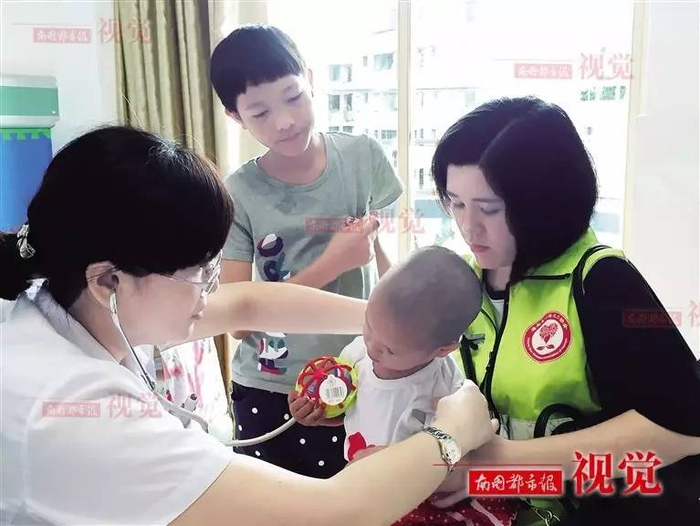 7月28日上午,在志愿者和堂哥陈宋开的帮助下,陈杨开带着五弟和六妹到海南现代妇婴医院进行健康体检。