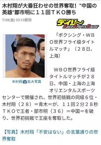 日本媒体:木村翔战胜中国英雄,夺得世界拳王腰带。
