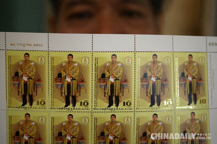 当地时间7月28日,泰国曼谷民众购买国王65岁生日纪念版邮票。(图片来源:视觉中国)