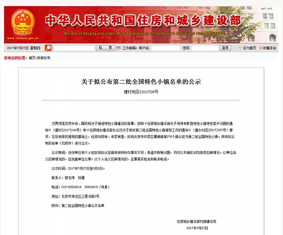 第二批全国特色小镇名单的公示》