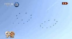 纪念标识梯队精彩亮相,17架直升机组成“八一”标识,24架直升机绘出“90”字样,象征着人民军队走过了90年光辉历程。