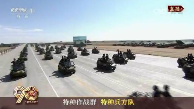 威风凛凛的特战尖兵乘坐全地形车,领队为张建刚少将。特种作战是现代战争的重要方式。我军特种兵近年频繁亮相国际赛场,在强强对抗中展示了中国军人的高超技能和旺盛斗志。