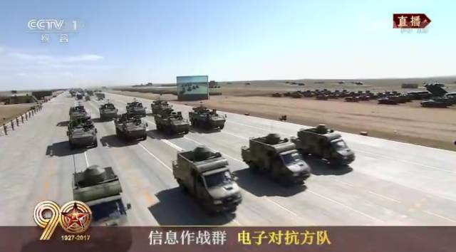 电子对抗方队,由雷达干扰车和通信侦察干扰车组成,领队为吴亚非少将。电子对抗已经成为现代战争中的重要手段。新型电子装备列装部队,使我军电子对抗能力获得长足发展。