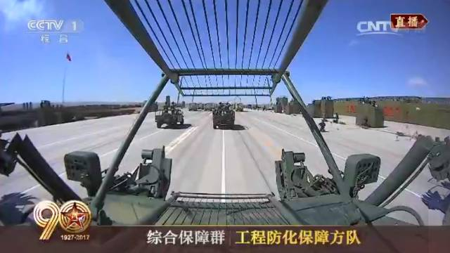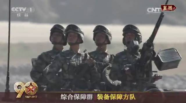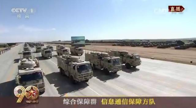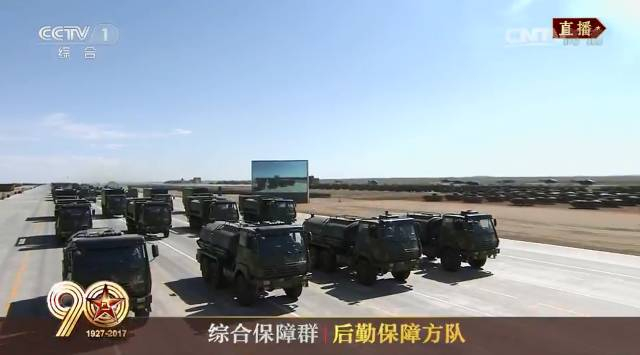 由信息通信保障方队、工程防化保障方队、后勤保障方队、装备保障方队组成的综合保障群接受检阅。