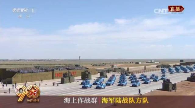 海上作战群包括海军陆战队方队、海军导弹第1方队、海军导弹第2方队。