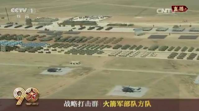 由火箭军部队方队、核常兼备导弹方队、常规导弹第1方队、常规导弹第2方队、核导弹方队组成。