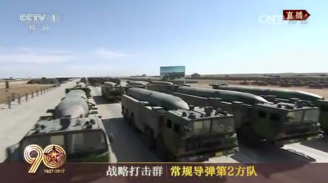 核常兼备导弹方队,领队为赵秋领少将。东风浩荡,雷霆万钧。今天受阅的东风-26导弹,能够跨区域无依托机动发射,可实施快速核反击和常规中远程精确打击。