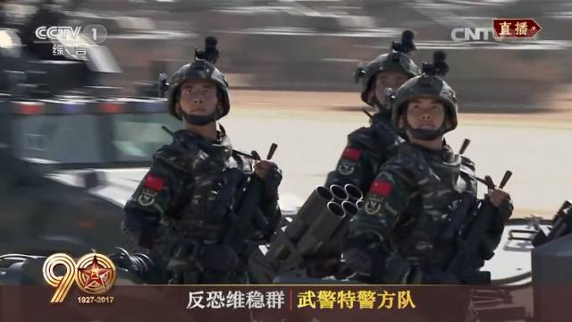 168名武警特战队员乘坐反恐突击车接受检阅,领队为徐平少将。武警特警方队由猎鹰突击队编成,是国家反恐力量的拳头部队,忠实履行着党和人民忠诚卫士的神圣职责。