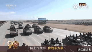 坦克方队领队为姚旺少将。22辆坦克呈“箭”形布阵,象征着“陆战之王”勇往直前。作为我国自主研发的主战坦克,99A坦克实现了火力、机动力、防护力和信息力的有效融合,体现了陆战装备的新水平。
