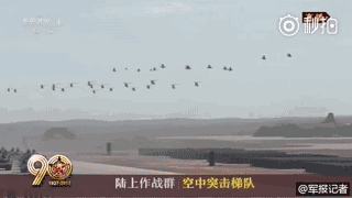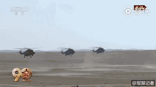 17架直升机组成“八一”标识,24架直升机汇成“90”字样,象征人民军队走过90年光辉历程。