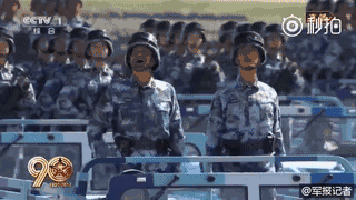 海军陆战队方队,领队为孔军少将。孔武有力的男兵,英姿飒爽的女兵,带来了大海的气魄,也把这支两栖作战力量的雄风带到了受阅现场。
