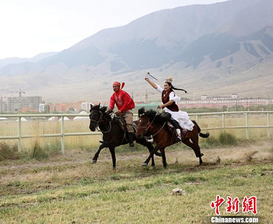 图为哈萨克族牧民表演“姑娘追”。 钟卫亮 摄