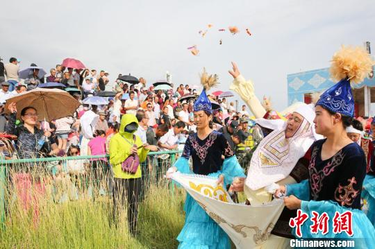 7月29日,在新疆巴里坤哈萨克自治县赛马场上,千余名各民族民众共同庆祝草原盛会——少数民族传统体育运动会暨阿肯阿依特斯大赛。