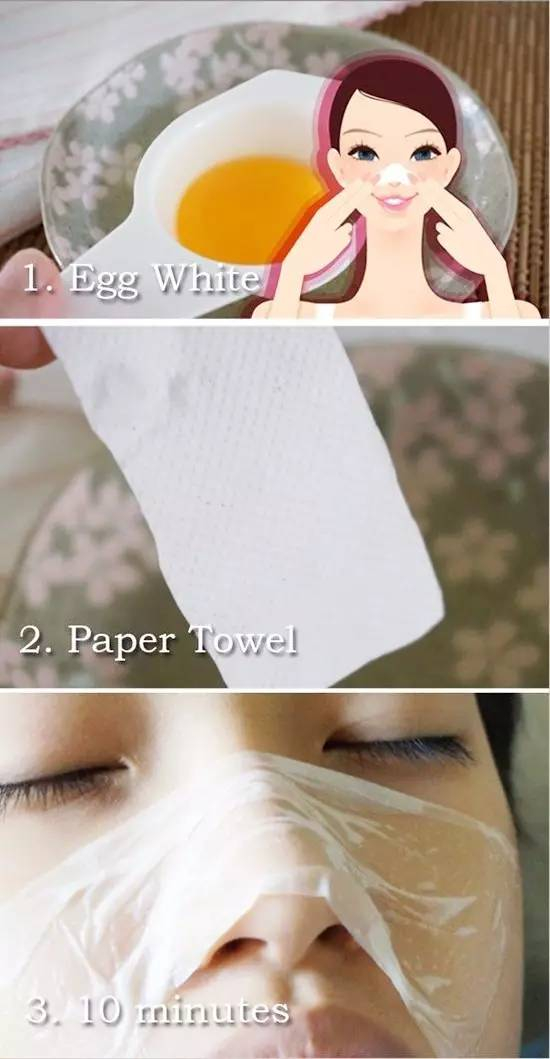 蛋清对去黑头也有不错的效果。将脸部的油垢、污渍洗干净,用温热的湿毛巾给鼻子做个热敷,让毛孔充分打开。