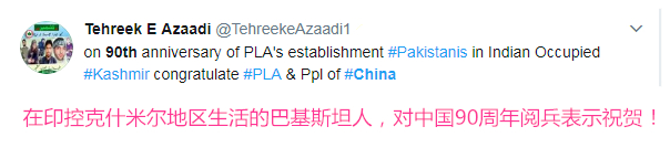 本来以为这场大戏就要结束了,结果邻居巴基斯坦人民赶来支援,一位“巴铁”的发言引人深思,“在印控克什米尔地区生活的巴基斯坦人,对中国90周年阅兵表示祝贺”。