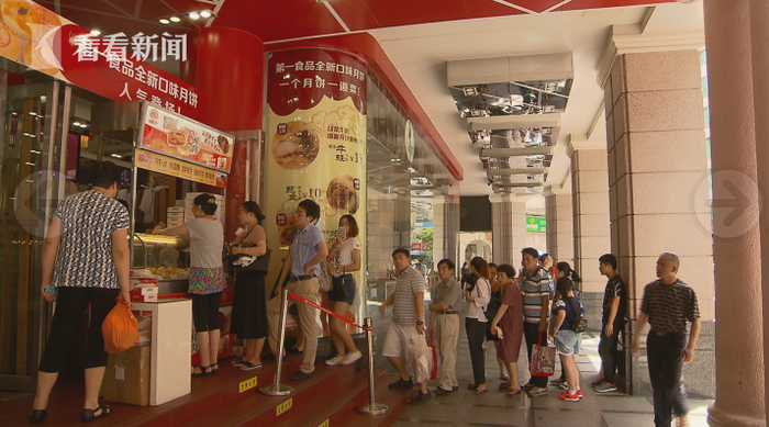 上午九点半,南京东路上一家老字号月饼店门前,早早就排起队伍。王阿姨说:“我一早从徐家汇来的,老远过来的。虽然中秋节还没到,但是先吃下来,吃到中秋节。”