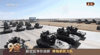 红旗-6弹炮导弹发射车、跟踪高炮车和09式自行高炮组成了弹炮系统方队。