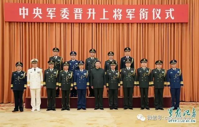 就在前天(28日),中央军委在八一大楼举行了晋升上将军衔仪式,习近平向晋升上将军衔的军官颁发命令状,他们是:中部战区司令员韩卫国、陆军政治委员刘雷、空军政治委员于忠福、火箭军政治委员王家胜、战略支援部队司令员高津。