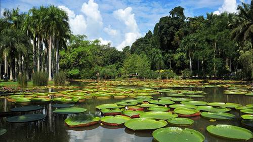 勐仑植物园又叫西双版纳热带植物园,位于勐腊县勐仑,距离景洪有96公里,距勐腊县城有一百多公里。流到这里的澜沧江支流——罗梭江刚好拐了一个弯,把陆地围成一个葫芦形的半岛,人们就把它叫做葫芦岛,植物园就建在岛上。经过40年的发展,现在岛上种植了3000多种国内外热带、亚热带植物,是中国科学院所属的一个重要热带植物园。 在植物园宾馆附近有一个人工大池塘,两岸种植着成片的披满"盔甲"的油棕树,这些高大笔直的树木,带来了浓郁的热带风情,它们个个都像威武的卫士,日夜守卫着自己的家园。