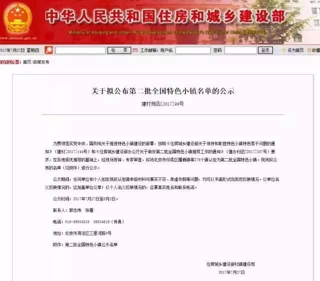 住建部拟公布了第二批全国特色小镇名单