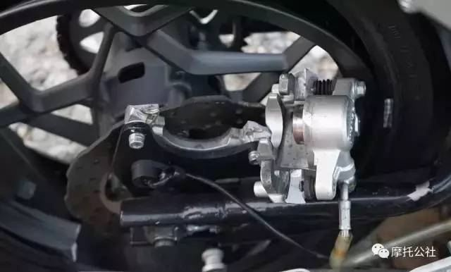 因车速较快,车子落地冲击力很大,加上尾部碰撞,所以事故车辆的后摇臂弯曲,后刹车盘因巨大的撞击力脱落,后刹车泵断裂、后轮毂断裂。但车架都完好无损。
