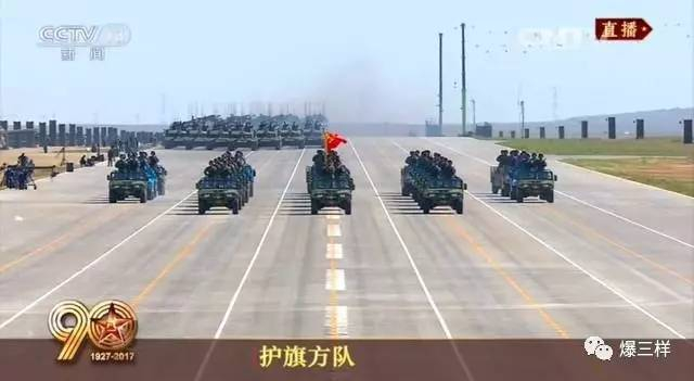 由陆军、海军、空军、火箭军4个军种官兵组成的护旗方队,今天上午出现在庆祝中国人民解放军建军90周年沙场阅兵中,拉开了阅兵分列式的序幕。4个军种官兵联袂组成标兵方阵护旗,这在人民军队阅兵史上还是第一次。