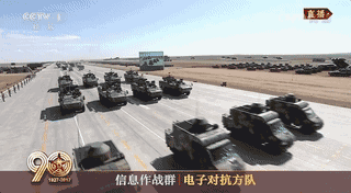 分列式中亮相的电子对抗方队,由陆军某新型雷达干扰车和某新型通信干扰车组成。两型参阅装备均为我国自主研发的新型装备,具有伴随机动和野战防护作战能力,是我军国土防空、野战防空中地面雷达干扰和通信干扰的主战装备。同时接受检阅的还有由两型电子侦察装备组成的电子侦察方队。受阅电子侦察车组具有多手段集成、部署灵活、机动性强等特点,能够为掌握复杂电磁环境下战场主动权提供有效支撑。电子对抗、侦察部队的打造,有利于抢占未来军事竞争战略制高点、打造新型作战力量。