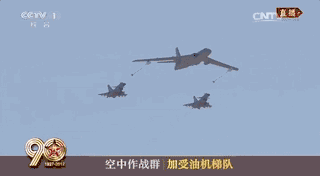 今天上午的阅兵中,两架轰油—6型空中加油机和4架歼—10C新型歼击机组成加受油机梯队,以预加油状态通过检阅台。其中,作为受油机的歼—10C新型歼击机是首次亮相阅兵场。其一机多型、一机多用的“滚动式”发展,是现代航空武器装备发展的普遍做法。空中加油续航,可增强航空兵的远程机动、持续作战和战场生存能力,是衡量一支军队联合作战和远程作战能力的重要标志。有了空中加油,中国空军由此飞得更高更远。