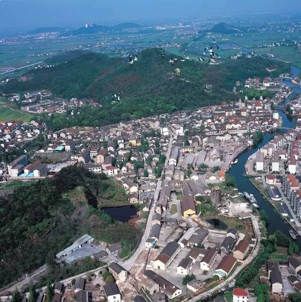 现今的天马山及山脚下天马山镇俯瞰