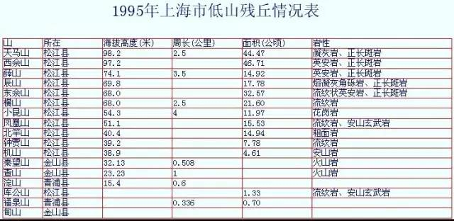 1995年上海陆上山丘概况统计表