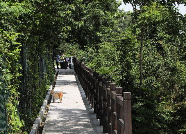 大金山岛上的守岛人以及陪伴他的猴子