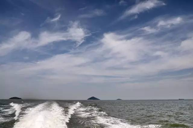 从海面上远眺金山三岛