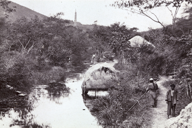 清末旅沪西侨郊游时拍摄的天马山、护珠塔及附近水道