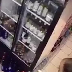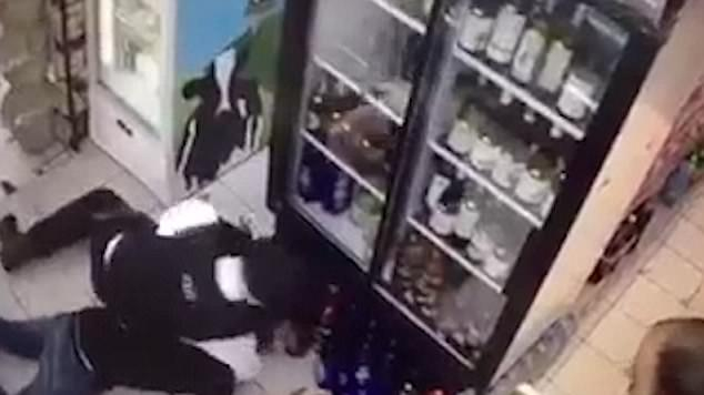 警官随后将他放倒在地,拉尚则不断挣扎,两人角力的时候把店家堆在地上的酒瓶碰得七零八落。最终,在一名民众的帮助下,警察终于将拉尚制服,给他戴上手铐,但这时他好像已经失去了意识,没有做任何反抗。