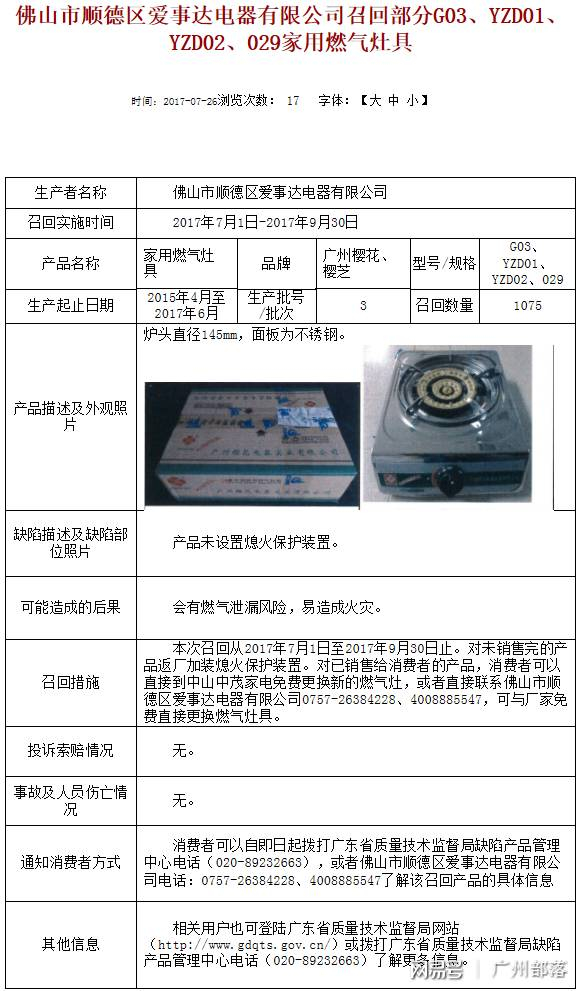 注意,广东这八批次燃气灶要召回!不想燃气泄露就赶紧自查