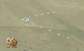 首先是空中标识梯队呼啸而来!17架直升机组成“八一”标识,象征着人民军队的“八一”起点;24架直升机汇成“90”字样,象征着人民军队走过了90年的光辉历程。 除了护旗方队和纪念标识梯队,今天一共有34个方队、梯队接受检阅,它们编入9个作战群。