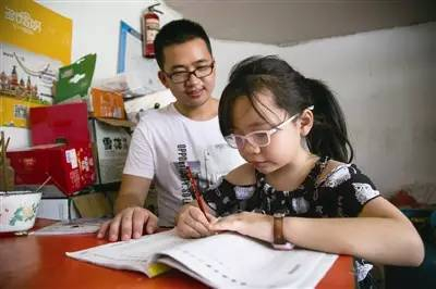 朱洪伟辅导妹妹做暑假作业