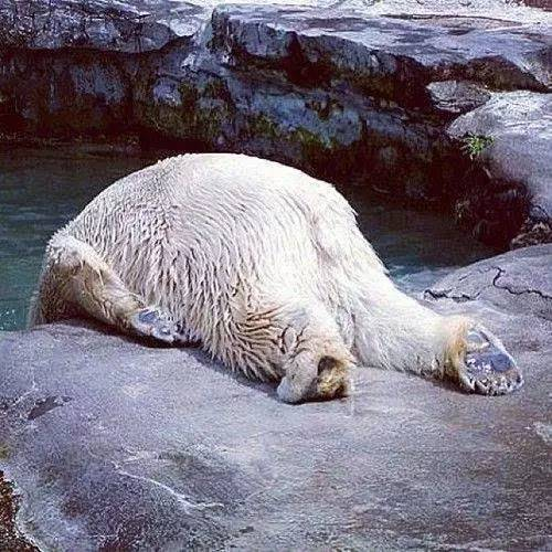 动物们也和人类一样天生会享受,大熊猫、大食蚁兽、企鹅们,都是趁着早上气温低,早早吃了营养早餐就到室外溜达,等温度一高就回到室内孵空调。