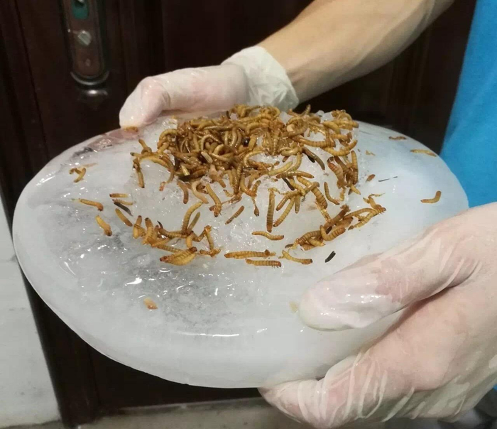 细尾獴吃的刨冰特别有新意,竟然是面包虫口味的!奶爸花了不少心思才制作出这样和它们胃口的夏季美食。