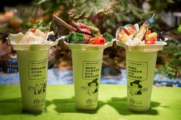 在亚米星球系列活动“新西兰快闪市集”上亮相的“霍比特人随身杯”包括三种不同风格,霍比特人杯(烤肉杯)、精灵王子杯(海鲜杯)、甘道夫杯(水果杯),上层主食搭配下层的软饮,走哪儿吃哪儿,十分方便。