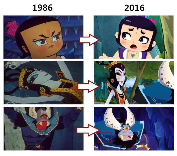 《葫芦兄弟》(1986年,左)与《新葫芦兄弟》(2016年,右)